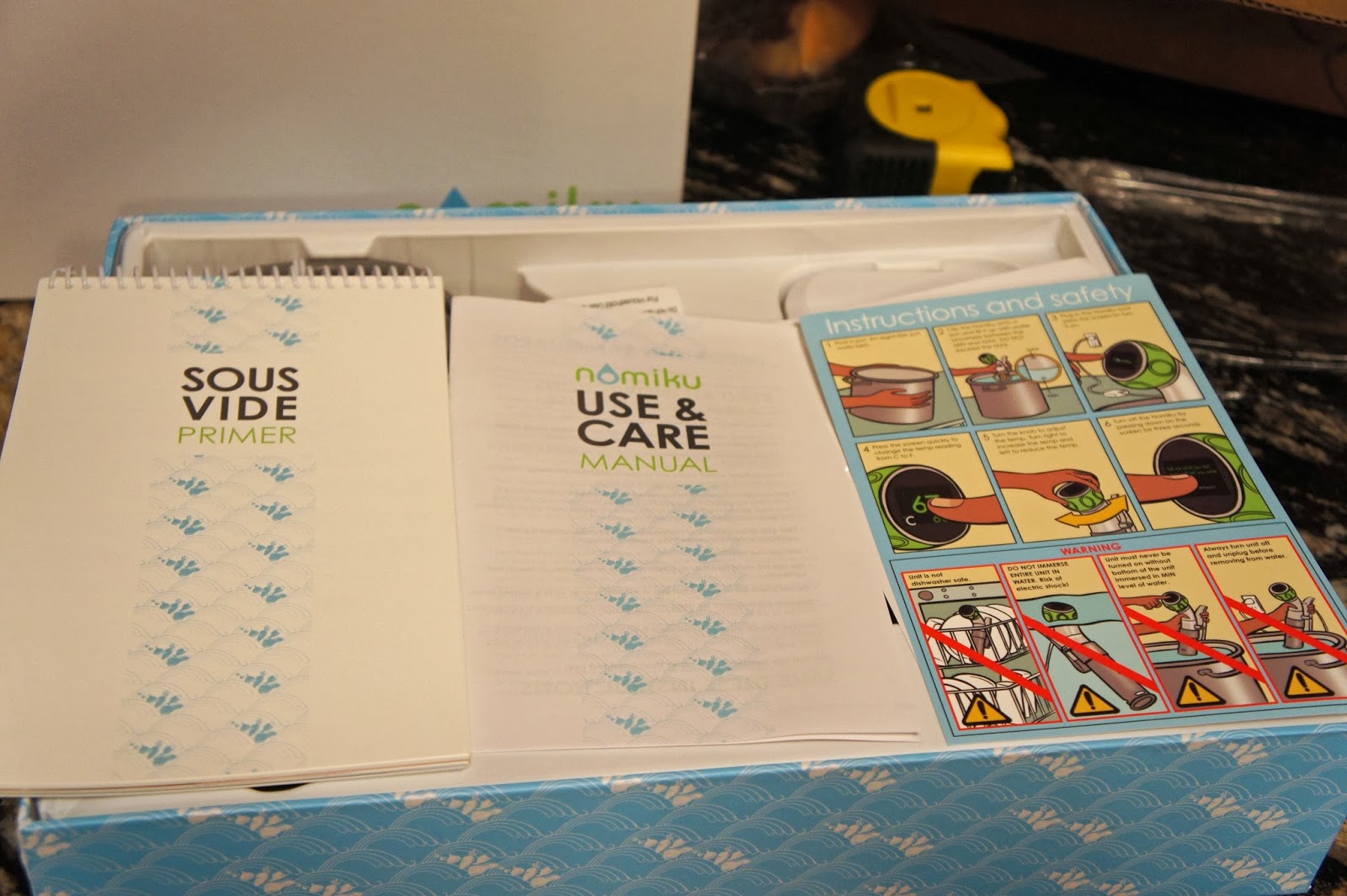 The nomiku comes with warranty, a sous vide primer/cookbook and a quick start guide (which I really appreciated). The box, unit and instructions are all very high quality, they didn't cut any corners.