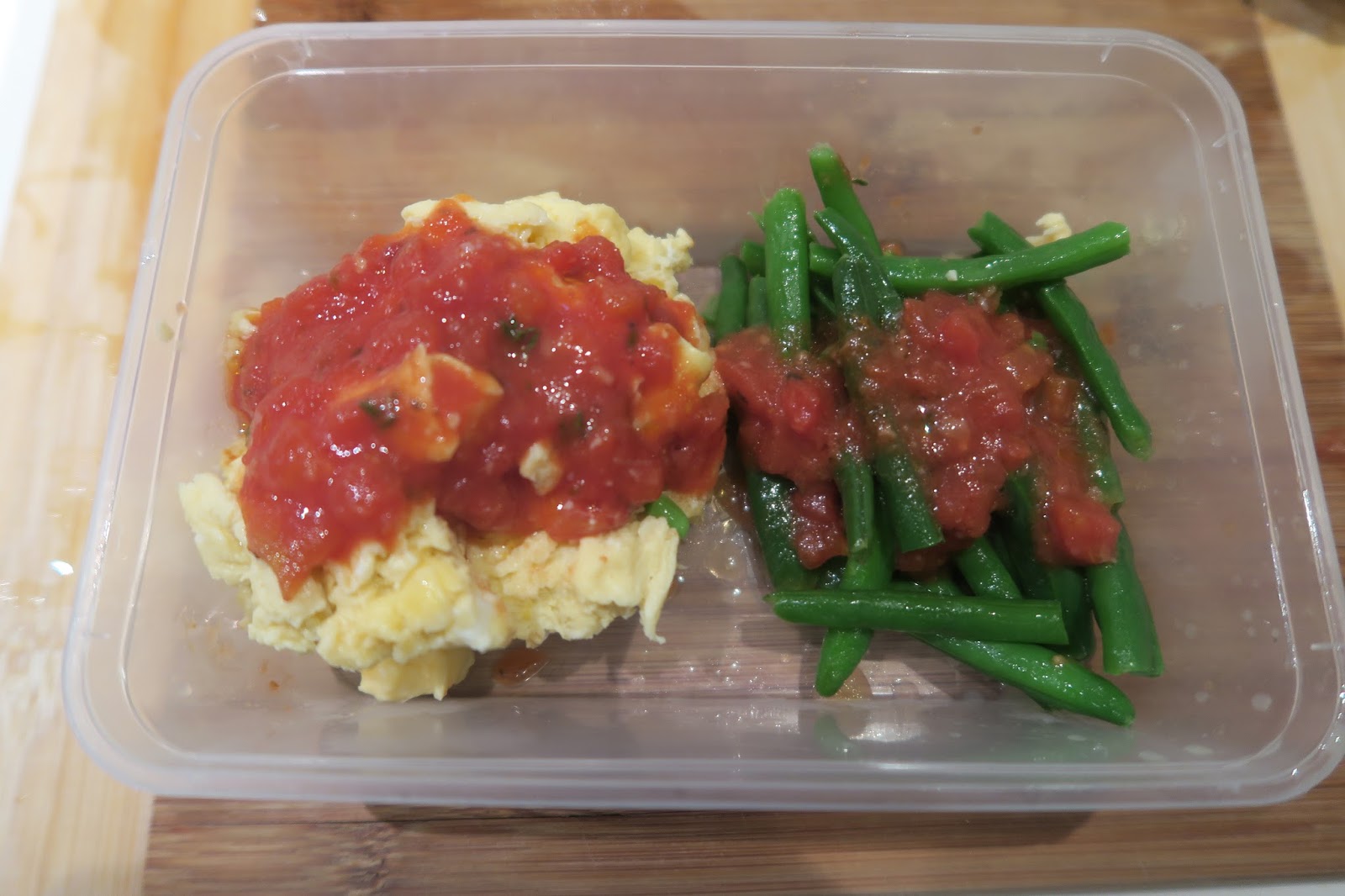 Now for a side. Veggies are the easiest thing to prepare in a microwave. Many super markets sell broccoli and cauliflower in a bag and you microwave them for 2 mins and they steam in their own baggies. I figured I could probably do the same thing with green beans. Ingredients: 1/2 tbsp butter (optional), pinch of salt, 1/2 cup green beans, 2 tsp water. I hand snapped the green beans to fit in the mug, dropped in the butter, pinch of salt and added a bit of water to the bottom of the mug to help with steaming. I sealed the mug with cling wrap and poked a few holes at the top and set the microwave to 90 seconds. The green beans were soft and retained their color I think 60 seconds would be fine if you still want some snap to your beans.
